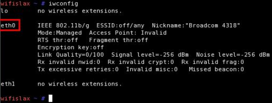 Debe de aparecer algo mas o menos así en iwconfig (eth0 es mi interfaz inalambrica)