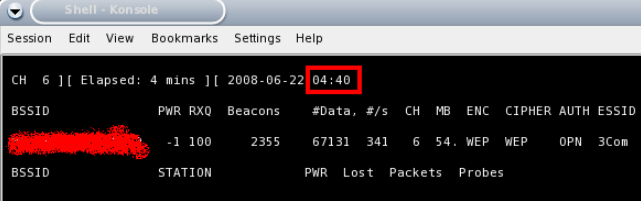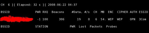 Y escaneamos la zona en busca de nuestras victimas, nos aparece el nombre de la red (ESSID) y el canal por el que transmite (CHANNEL).