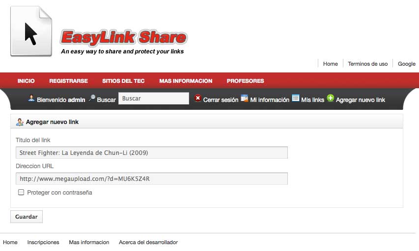 Pero ahora de lo que verdaderamente les quería hablar, un proyecto que comencé a realizar de la noche a la mañana, ya esta disponible la versión Beta 1.0 también, ha este nuevo proyecto (que realizo generalmente los fines de semana por cuestiones de tiempo) lo he nombrado EasyLink Share y es un protector de enlaces, decidí realizarlo ya que por una parte veía los servicios existentes de este tipo y pensaba, esto no es nada complicado, puedo hacerlo en unas cuantas horas, y además por que en forobeta hay varios usuarios que querían un servicio de acortador y protector de enlaces, debido a eso me puse a programar un sábado a las 2 am x’D y cuando amaneció ya estaba terminada la primera versión del proyecto, sigo desarrollando módulos y componentes para el proyecto siguiendo las recomendaciones de que es lo que les gustaría que tuviera el servicio a algunos amigos uploaders del foro que tengo (para este tipo de usuarios va dirigido el sistema), la aplicación esta desarrollada como la mayoría de las aplicaciones actuales deberían estarlo xD, su front end, su back end, un sistema de logs de la aplicación, sistema de usuarios, grupos y permisos, recuperación de contraseña, etc. El sistema esta desarrollado utilizando el framework cakephp + framework (ósea como un framework de un framework :)) con el que es muy fácil desarrollar aplicaciones rápidamente!