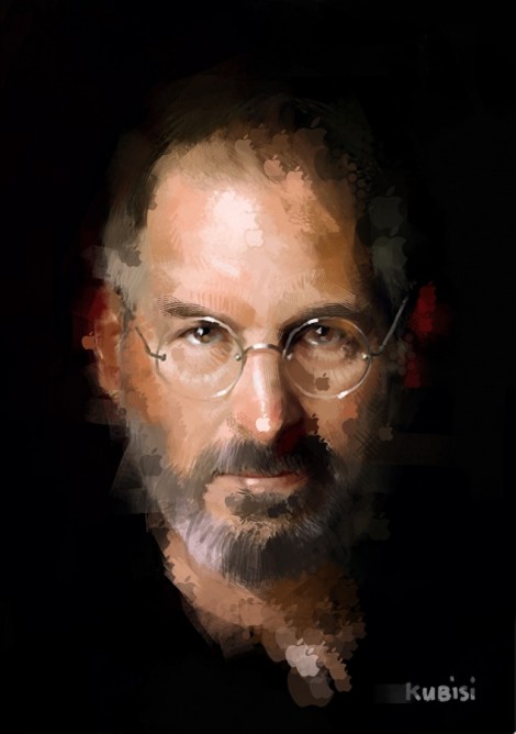 Un artista realizo un retrato de steve jobs utilizando un brush del logo de apple