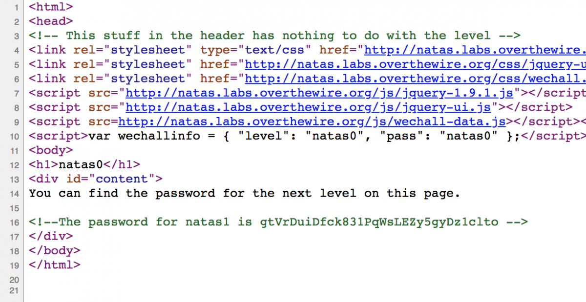 Me di a la tarea de investigar varios de los CTFs que hay en Internet (básicos, intermedios, avanzados, imposibles, etc…) y creo que el mejor para principiantes se encuentra en OverTheWire, la idea es que resolveremos el CTF llamado Natas donde aprenderemos lo básico de web y mobile hacking y terminando esta serie (son 33 niveles) nos moveremos a algo un poco mas intermedio/avanzado donde tengamos que hacer binary exploitation.