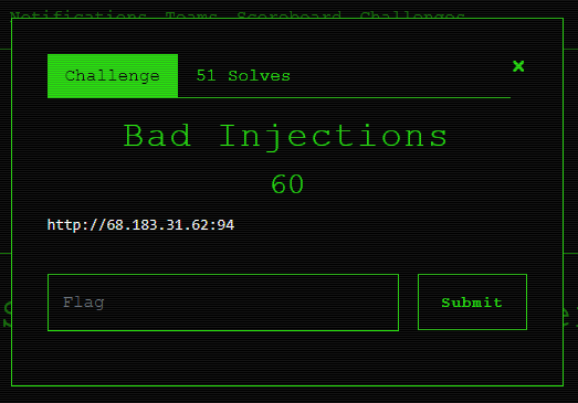 Hi everybody, this is the first CTF I play this year, it was organized by the FireShell Security team (thank you so much guys!) and this the writeup for the Bad Injection challenge from the web category.